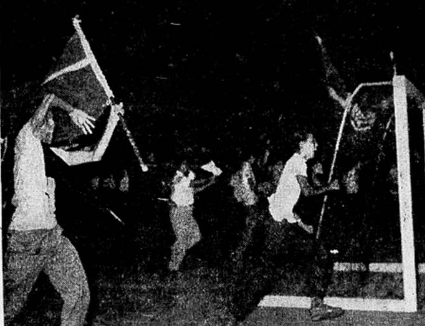 A torcida Pó de Arroz invadiu a quadra do ginásio para festejar a conquista.