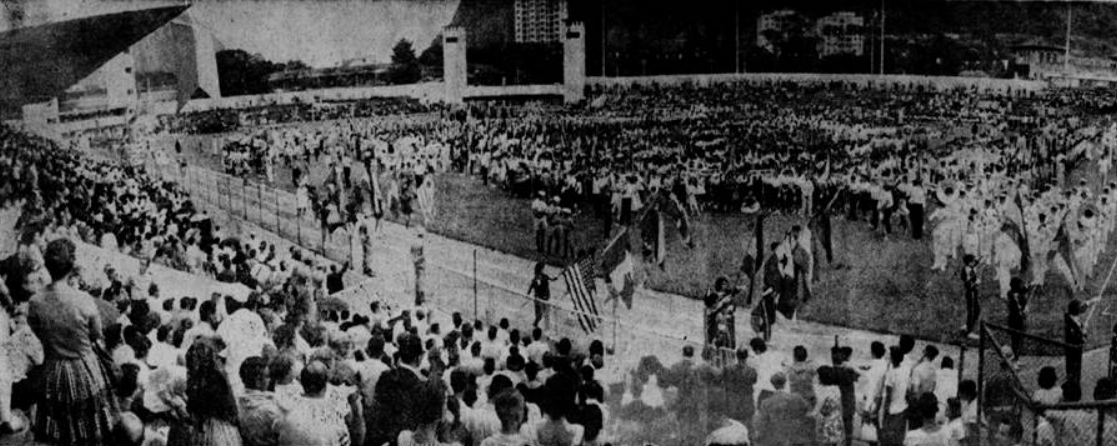 • Segunda foto: o Desfile que abriu os Jogos Infantis de 1960.