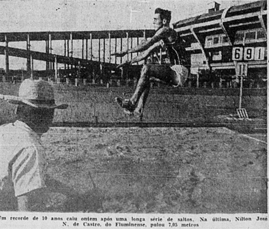 A primeira foto é de Adhemar Ferreira da Silva (Vasco da Gama). A segunda foto é da acirrada disputa entre vascaínos e botafoguenses. A terceira é de Nílton José pontuando para o Fluminense. Depois temos a alvinegra Cirene Gomes. A última é da atleta do Botafogo Erica Konrad.