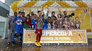 Parabéns! O Fluminense se sagrou campeão da Supercopa América Sub-10 Masculino de futsal de 2018. A Campanha 1ª Fase 4-1 FutFoz do Iguaçu (PR) 2-1 Real Futsal (??) 5-0 Sodegaura (Japão) 2ª Fase 1-1 Sport (PE) 3ª Fase 4-3 Portuguesa (SP) 4ª Fase 1-0 Santos (SP) Final 2-1 AA Portuários (??) Os Campeões 2018 – Fluminense FC